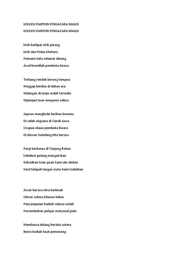 Koleksi pantun pengacara majlis koleksi pantun pengacara majlis.